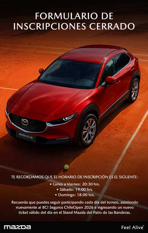 - REGÍSTRATE Y PARTICIPA POR UN MAZDA CX-30 EN EL BCI SEGUROS CHILEOPEN 2026.